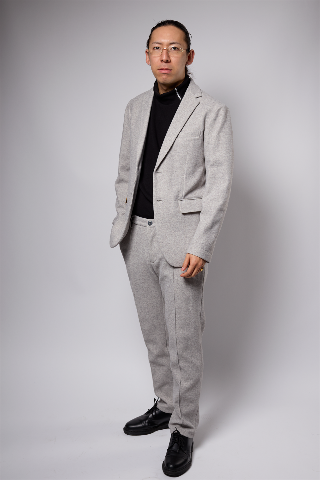 ダブルニットの生地にニードルパンチ加工をする事により、モッサの生地の様な膨らみと高級感のある素材になっています。ニット素材の為伸縮性と着心地が抜群です。イージーケアにもなっております。